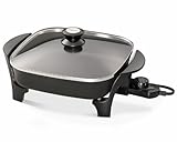 11-foot Electric Skillet with glass lid. Roasts, fries, grills, stews, bakes, makes casseroles and more.